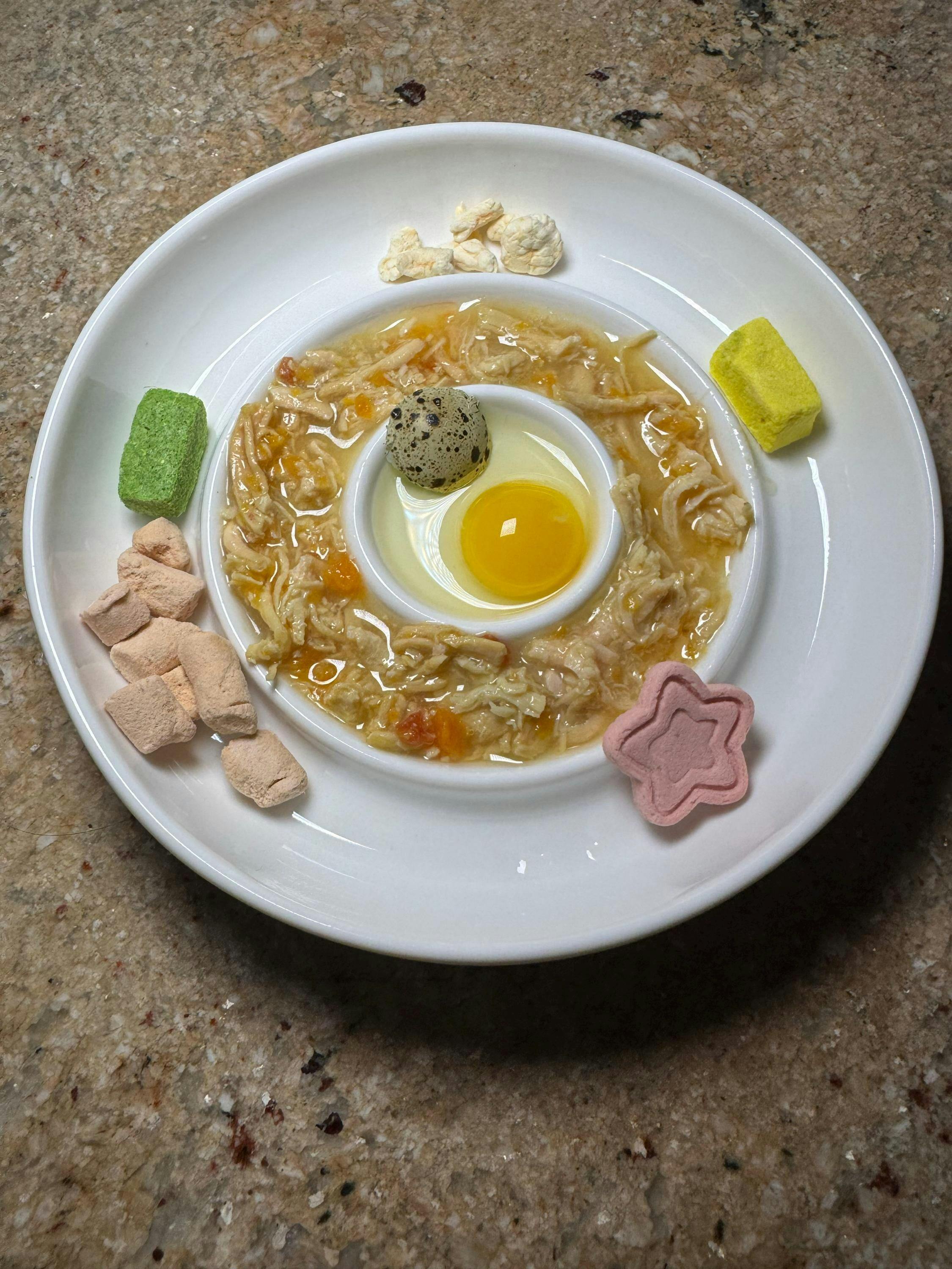 Egg yolks provide essential vitamins and healthy fats to support muscle strength, immune health and a shiny coat, while lecithin supports brain and liver function, aids fat digestion and may help reduce hairballs in cats.